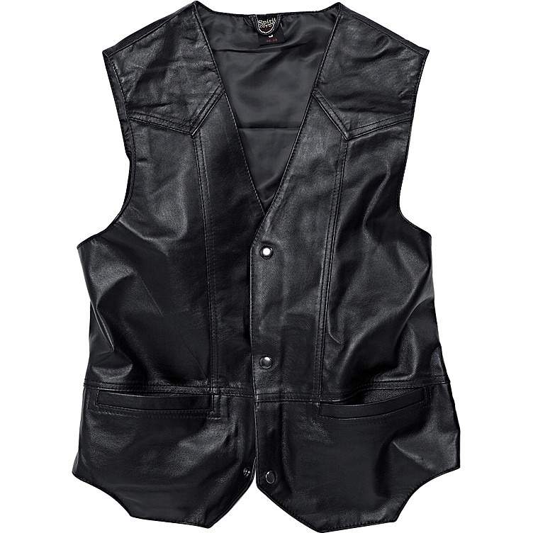 Klasyczna skórzana kamizelka z klasycznym designem zapinana na guziki.