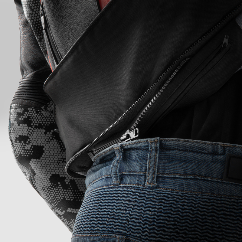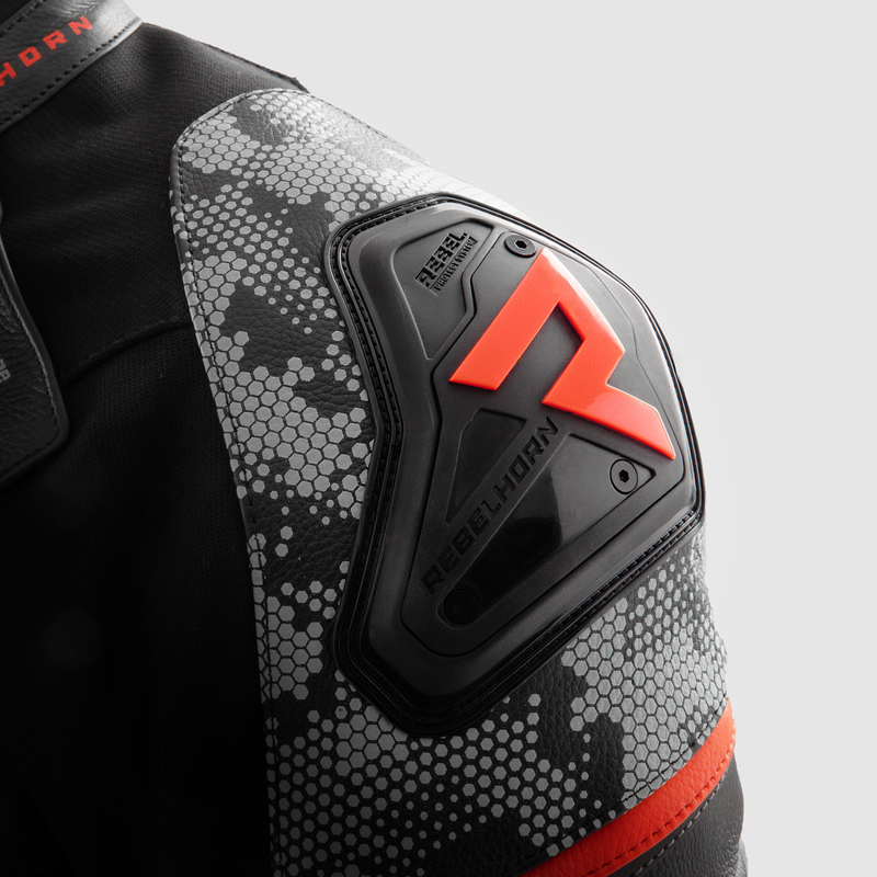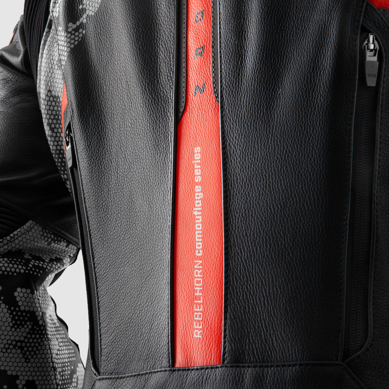 Kurtka motocyklowa skórzana Rebelhorn Veloce Camo Black Grey Fluo Red
