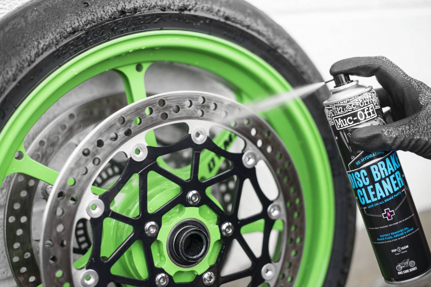 Nanieś środek na tarcze hamulcowe i klocki. Pozostaw do odparowania i zetrzyj nadmiar czystą, suchą ściereczką.