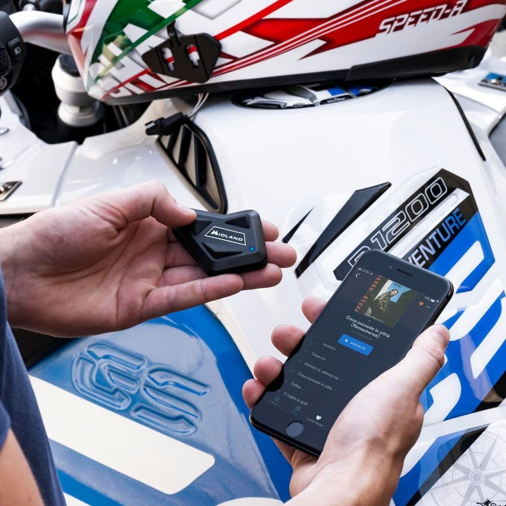 Midland BT Mini to idealny do skuterów i motocykli o aerodynamicznym kształcie i wygodnymi, łatwo dostępnymi 3 przyciskami sterującymi.
