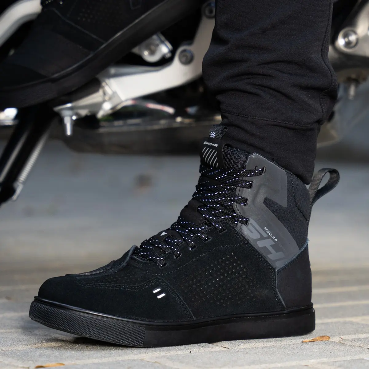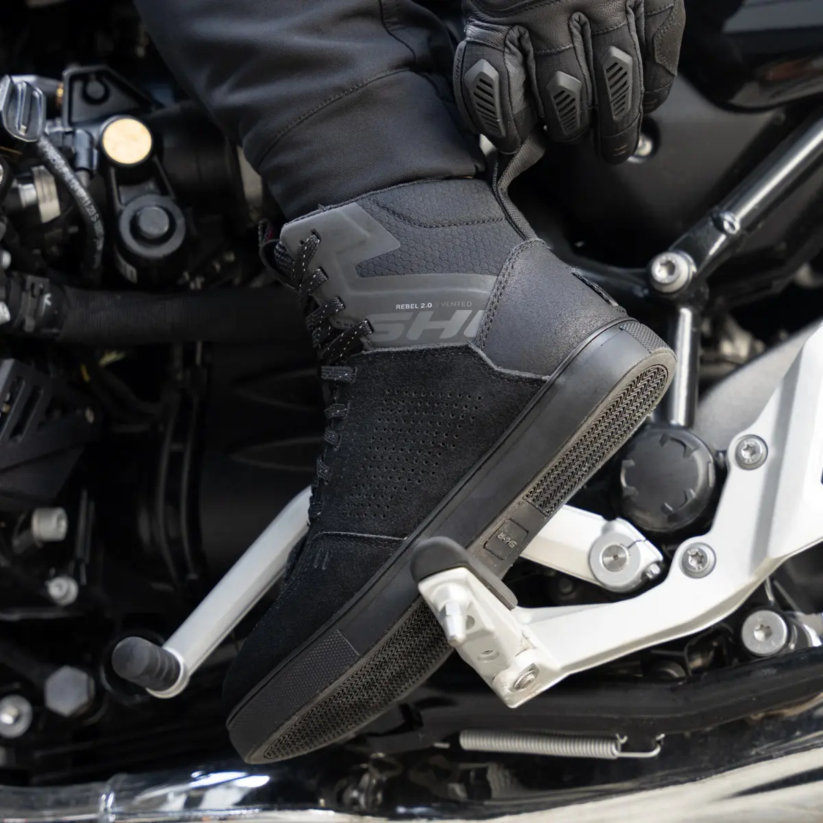 SHIMA REBEL 2.0 VENTED Lady to mocno wentylowane, damskie trampki motocyklowe do codziennej jazdy. Szczególnie docenią je motocyklistki, które poszukują bezpiecznego i komfortowego obuwia na gorące dni. REBEL 2.0 VENTED Lady zapewniają wyjątkową przewiewność dzięki dużej perforacji punktowej oraz perforowanemu językowi z tkaniny mesh. Model oferuje również solidne wzmocnienia na pięcie, kostce i palcach oraz poprzecznie wzmacnianą gumową podeszwę. Wnętrze buta wzbogacone jest o polipropylenową wkładkę wzmacniającą. Buty posiadają antypoślizgowe przetłoczenia do zmiany biegów na nowoczesnej nakładce wykonanej z oddzielnego kawałka materiału. Specjalna konstrukcja dostosowana do pozycji stóp podczas jazdy motocyklem gwarantuje stabilność i komfort. Dodatkowe funkcje, takie jak osłonka sznurowadeł, duże panele odblaskowe i regulacja sznurowadeł, czynią buty REBEL 2.0 VENTED Lady praktycznym wyborem. Dostępne w klasycznym czarnym kolorze oraz szarym, w rozmiarach od 36 do 41, te trampki łączą styl, komforty i wygodę.
