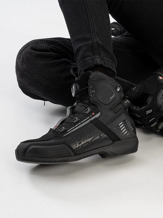 Dla jeszcze lepszego komfortu model EDGE VENTED posiada klin ułatwiający odnalezienie odpowiedniej pozycji nogi na podnóżku oraz wzmocnienie w obszarze nakładki do zmiany biegów. Natomiast elementy odblaskowe sprawią, że będziesz bezpieczny nawet po zmroku
