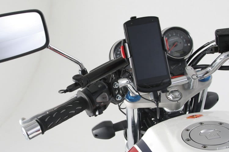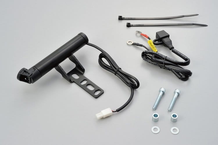 Źródła zasilania z 2 portami USB na przewodach do montażu na kierownicy motocykla.
