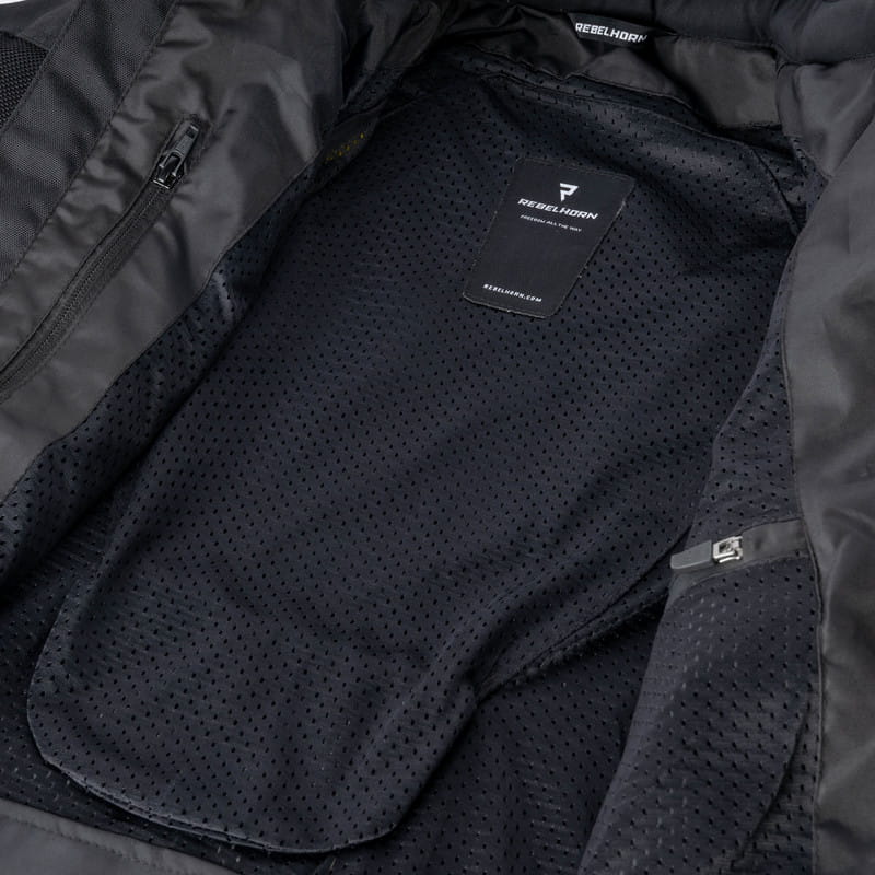 Kurtka motocyklowa tekstylna Rebelhorn Scandal II Lady wyposażona jest w regulowane ochraniacze łokci oraz kieszeń na ochraniacz pleców. Kołnierz i mankiety wykończono miękkim materiałem. Rebelhorn Scandal II Lady dopasowuje się do sylwetki, dzięki regulacjom i zastosowaniu elastanu.