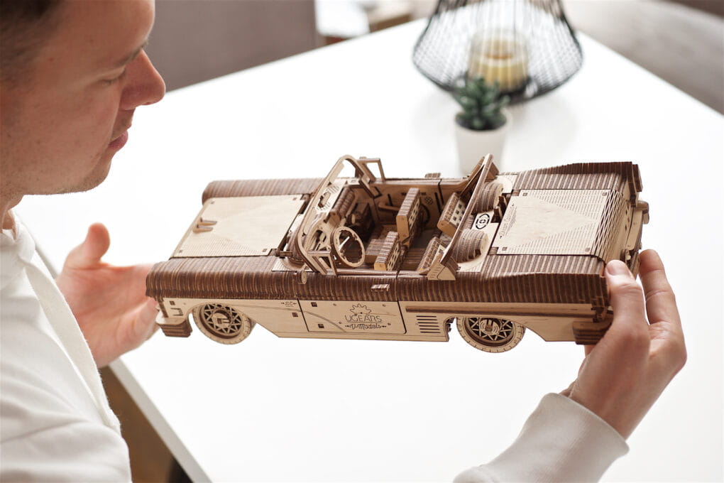 Kontynuując badanie historycznych mechanizmów w praktyce, Ugears zaprasza na ekscytującą podróż do lat 50. ubiegłego wieku. Rockabilly, bujne spódnice i oczywiście splendor luksusowych samochodów: poczuj atmosferę połowy ubiegłego wieku dzięki nowemu, interesującemu modelowi Ugears - Kabriolet Marzeń VM-05.