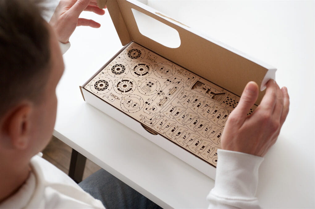 Kabriolet Marzeń VM-05 jest wykonany ze sklejki o wysokiej jakości, sprawdzonej przez europejskie laboratoria. W środku opakowania znajdziesz płyty ze sklejki, z których wystarczy wycisnąć gotowe części i przekształcić je w gotowy działający model.