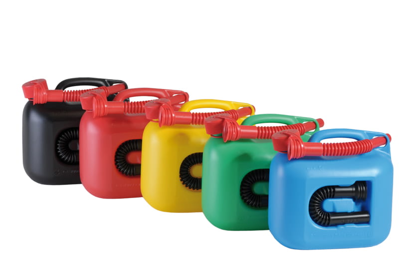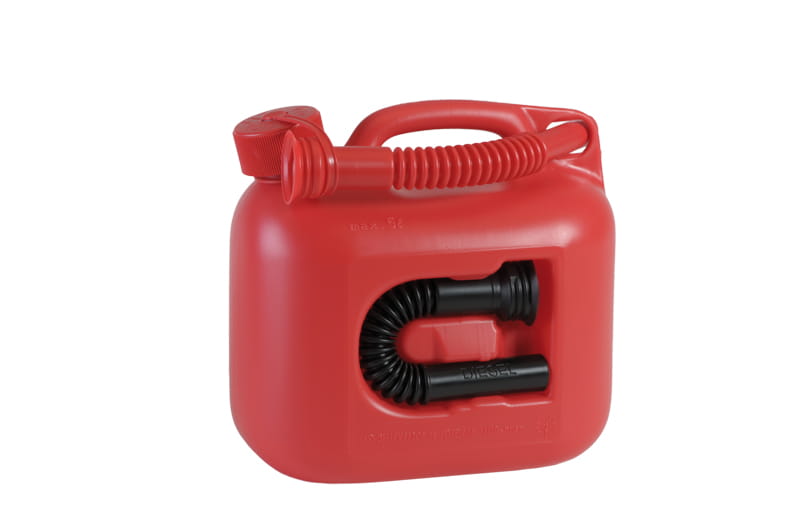 Kanister na paliwo PREMIUM, 5 l, kolor czerwony, HDPE, z dopuszczeniem UN, na benzynę, olej napędowy i inne substancje niebezpieczne, spełnia najsurowsze wymogi bezpieczeństwa, dzięki ciężkiemu wykonaniu bardzo niska przepuszczalność (neutralny zapach), Produkcja sprawdzona przez TÜV, nadaje się do paliwa E10, ze zintegrowaną w korpusie kanistra wylewką do pojazdów z silnikiem wysokoprężnym, z zabezpieczeniem przed zatankowaniem niewłaściwego paliwa (nr art. 819100), z wylewką i złączką gwintowaną zabezpieczoną przed zgubieniem i otwarciem przez dzieci, kolor: czerwony, do oznaczania (zgodnie z rozporządzeniem w sprawie Globalnego Zharmonizowanego Systemu Klasyfikacji i Oznakowania Chemikaliów (GHS) oraz porozumieniem ADR) kanistrów napełnionych paliwem zalecamy nasze samoprzylepne etykiety do kanistrów, nr art. 306100, na zapytanie: możliwości: branding, etykietowanie i indywidualne kolory, dostępne oddzielne akcesoria i części zamienne, np. bezpieczne systemy do napełniania, wylewki, etykiety z informacjami o substancjach niebezpiecznych (306100), nr dopuszczenia UN 3H1/Y/120/XX/D/BAM 14119-huen, w = średnica wewn. otworu wlewu = 29 mm / a = średnica zewn. gwintu = 38 mm, t = głębokość=147 mm b = szerokość=265 mm h = wysokość=247 mm