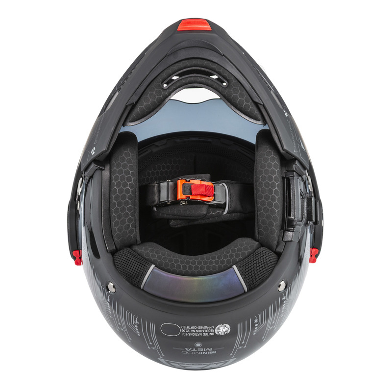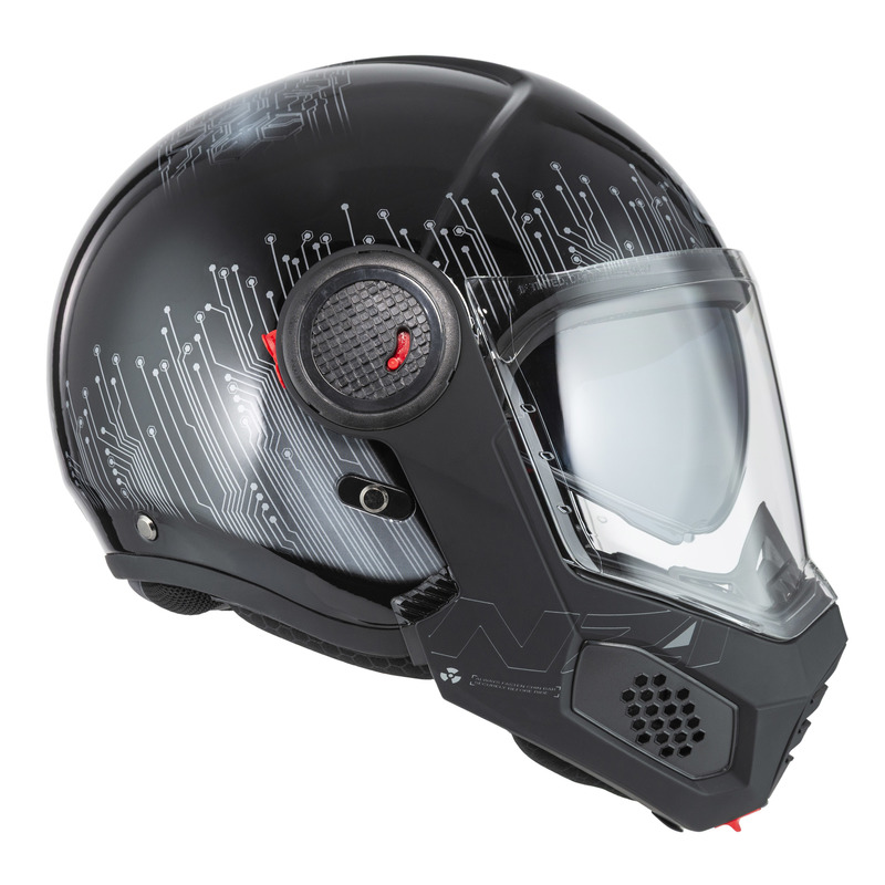 Kask motocyklowy NZI MINIMOD DUO to wyjątkowo kompaktowy kask szczękowy spełniający restrykcyjne normy UN ECE R22.06 oraz posiadający homologację P/J, zapewniając bezpieczeństwo zarówno w konfiguracji zamkniętej, jak i otwartej. Jest wyposażony w wizjer z powłoką ograniczającą parowanie oraz blendę przeciwsłoneczną. Dzięki specjalnym kanałom dla osób noszących okulary oraz wyciszającym deflektorom jazda staje się bardziej komfortowa i przyjemna. To nowoczesny, praktyczny i lekki kask idealny do jazdy miejskiej i turystycznej.