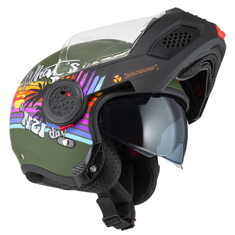 Kask Motocyklowy NZI Minimod Duo Rainbow Greenblack Silver Matt