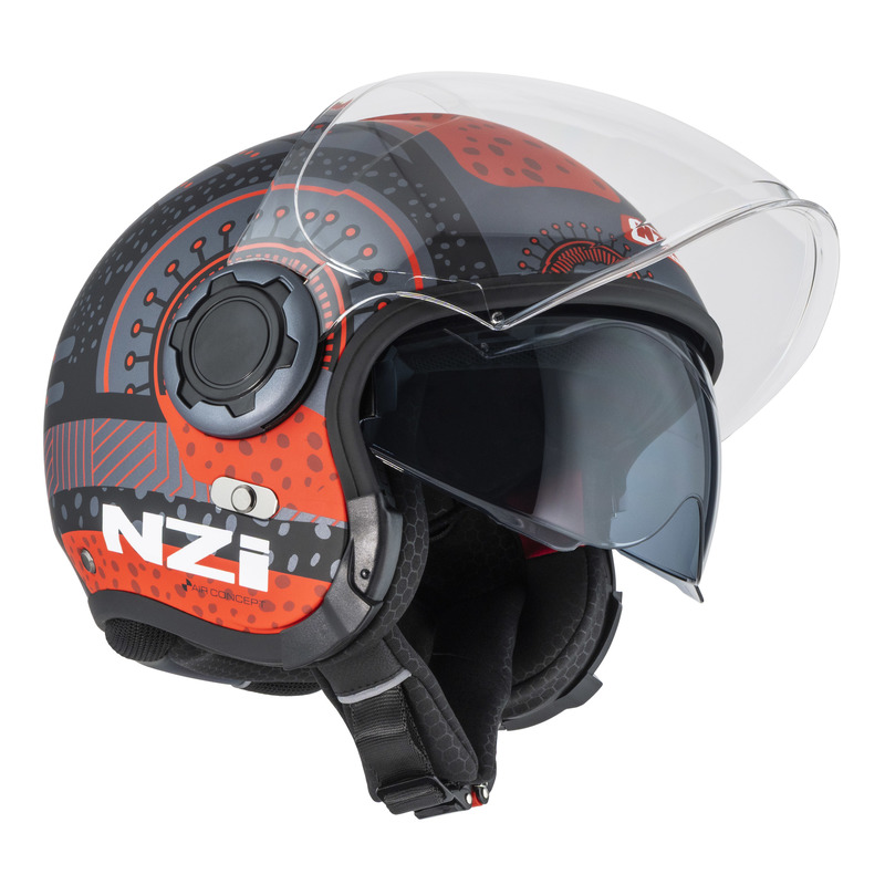 Kask motocyklowy NZI RINGWAY 2 DUO to otwarty kask typu semi-jet zgodny z normą UN R22.06, łączący nowoczesny i vintage’owy styl w lekkiej, komfortowej konstrukcji. Dzięki blendzie przeciwsłonecznej oraz zewnętrznej szybie, którą można łatwo zdjąć bez użycia narzędzi, kask świetnie sprawdza się zarówno w mieście, jak i na trasie. Wypinane, nadające się do prania wnętrze zapewnia wysoki poziom higieny i wygody, a szeroka szyba chroni twarz przed wiatrem, zimnem i drobnymi uderzeniami podczas jazdy. To jeden z najwygodniejszych kasków otwartych w swojej klasie, dostępny w szerokiej gamie grafik.