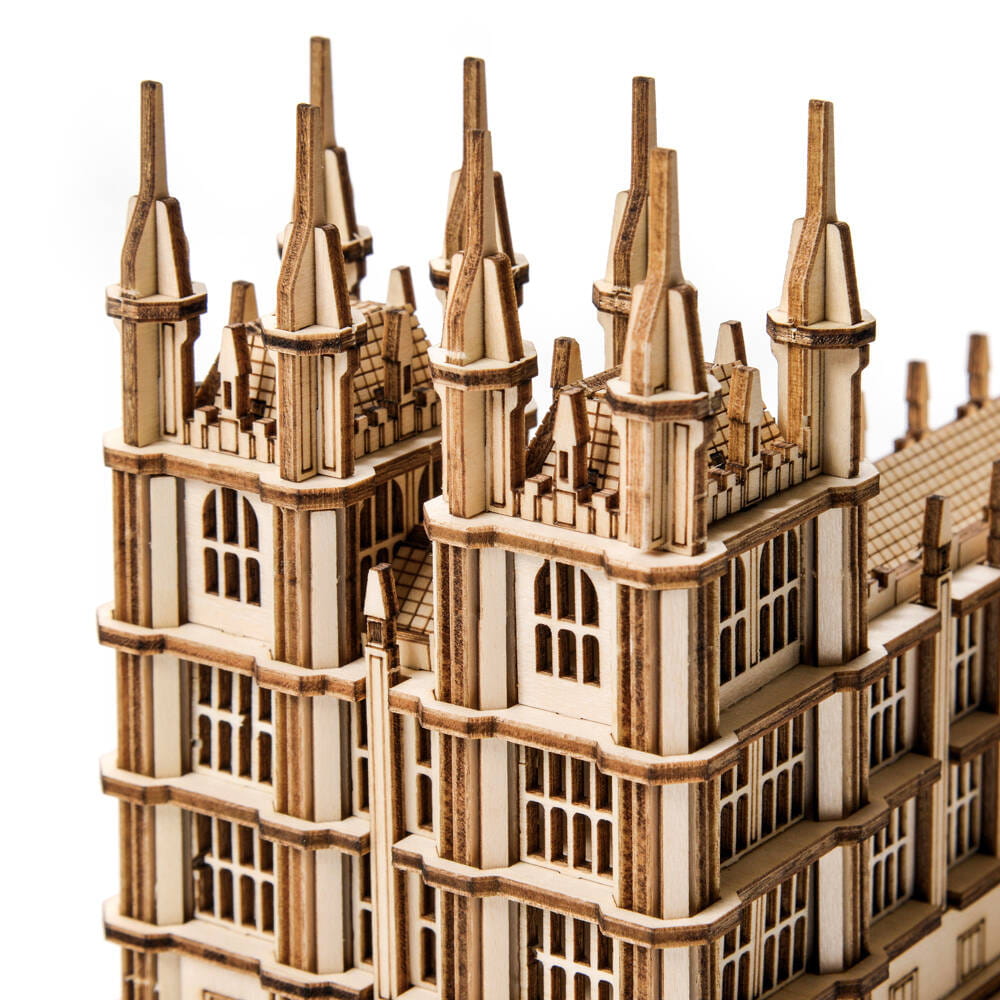 Drewniane puzzle 3D w kształcie Big Bena czyli wieży zegarowej Elizabeth Tower w Londynie w Wielkiej Brytanii. Zestaw został wykonany z wysokiej jakości sklejki i jest w postaci arkuszy z wstępnie wyciętymi i ponumerowanymi elementami. Przed montażem należy oddzielić części od wykroju, a następnie połączyć bez użycia kleju, zgodnie ze szczegółową instrukcją dołączoną do opakowania. Zabawka edukacyjna, która po złożeniu może również służyć jako dekoracja. Uwaga - zestaw może zawierać małe elementy, podczas składania puzzli, dzieci muszą pozostać pod opieką dorosłych.