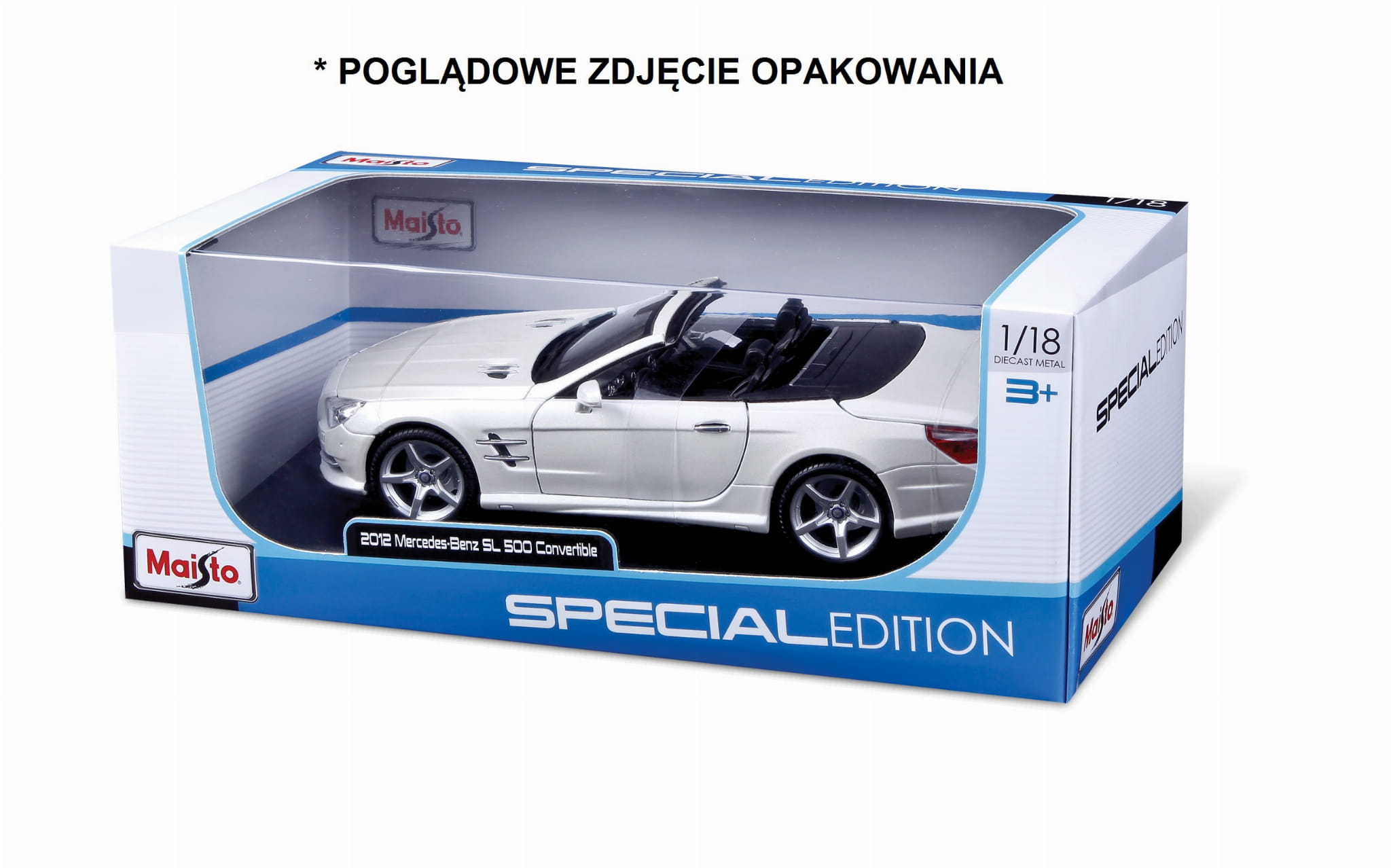 Model wykonany w skali 1:18. Metalowe nadwozie oraz plastikowe elementy. Charakteryzuje się ruchomymi elementami oraz dbałością o każdy szczegół. Auto posiada skrętną kierownicę i koła oraz działające zawieszenie. Drzwi są otwierane, a maska i klapa bagażnika uchyla się. Świetna zabawka dla dziecka. Dzięki podstawce ekspozycyjnej znajdującej się w pudełku model doskonale nadaje się jako eksponat na półkę lub biurko kolekcjonera. Wiek: 3+. Szt/karton: 4