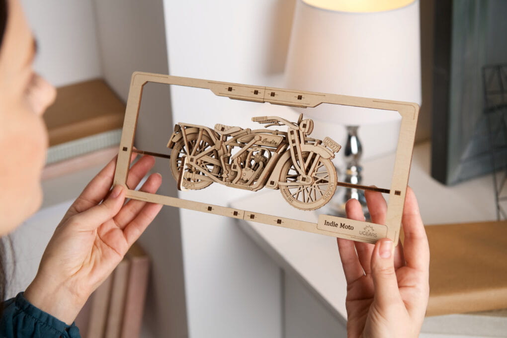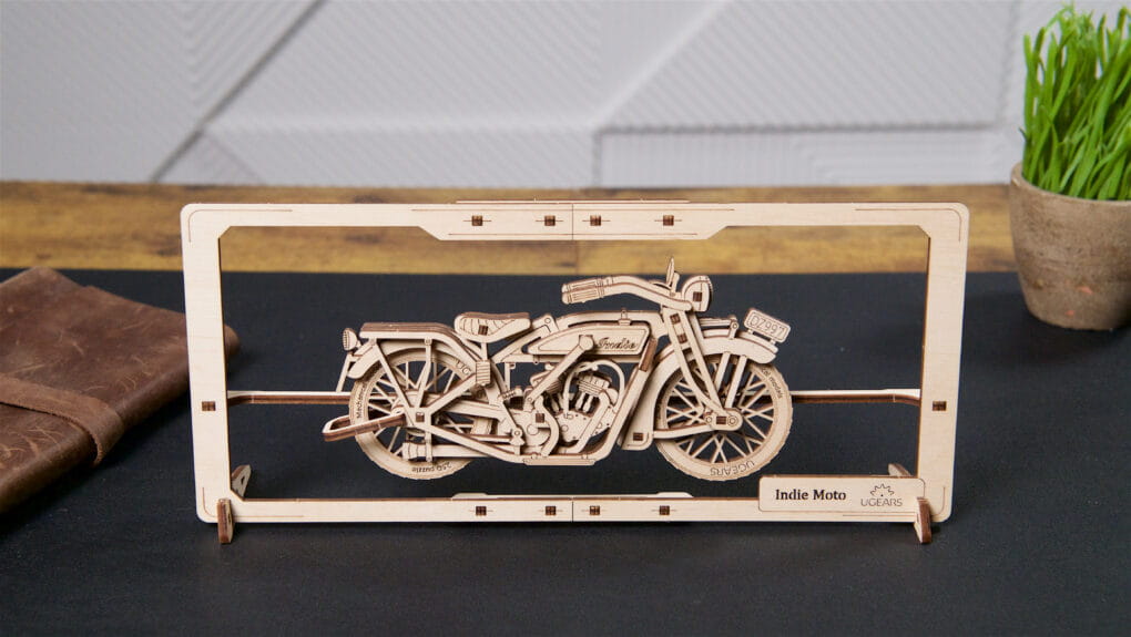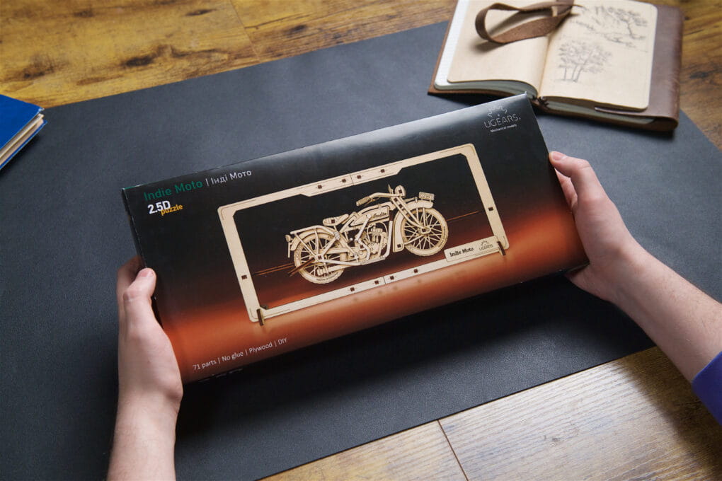 Rozpocznij swoją kolekcję drewnianych puzzli obrazkowych 2,5D UGEARS już dziś od Motocykl Indie, a następnie rozgałęź się i poznaj wspaniały świat mechanicznych puzzli 3D Ugears, w tym samochodów, ciężarówek, statków, motocykli, automatów, robotów, drewnianych pudełek z puzzlami i zestawów modelowych STEM Lab.
