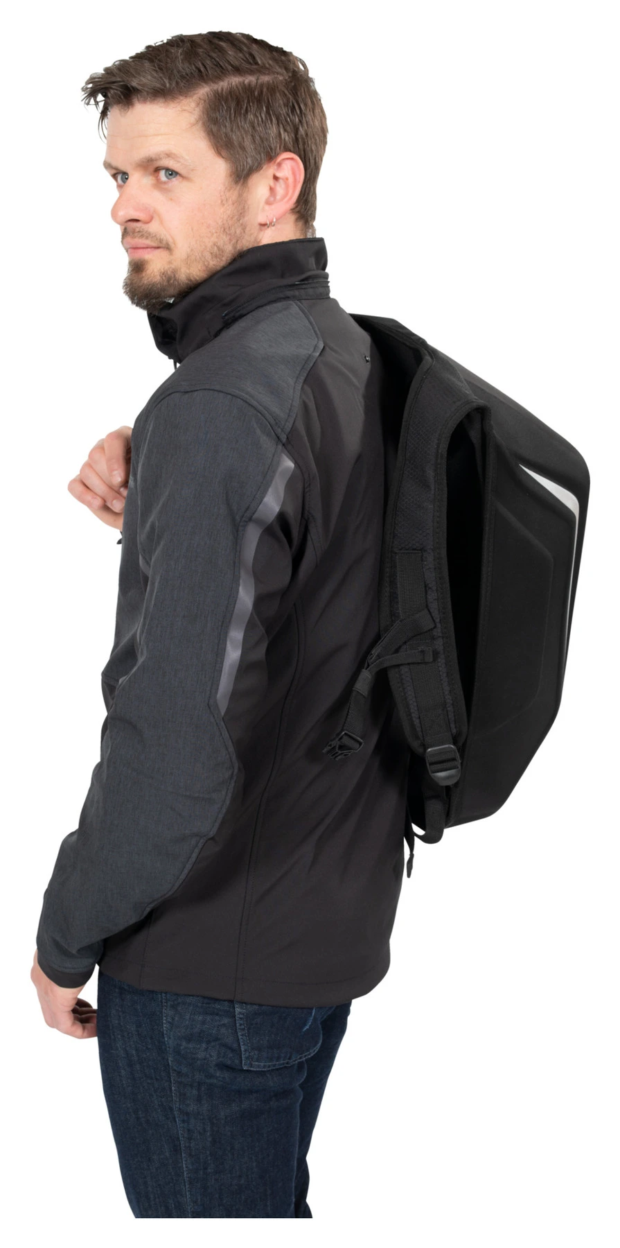 Plecak zaprojektowany z myślą o motocyklistach. Jego forma idealnie przylega do pleców w pozycji pochylonej dzięki czemu nie ma żadnej utraty aerodynamiki podczas jazdy. Twarda struktura nie tylko powoduje iż w środku nic się nie zgniecie, ale też jest doskonałym dodatkiem jako "garb".