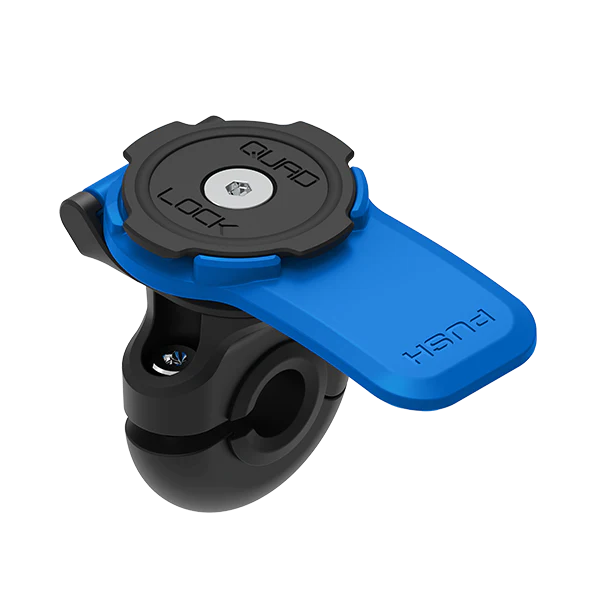 Podstawa montowana na lusterku Quad Lock® pozwala pewnie zamocować telefon na standardowych wspornikach lusterek motocyklowych i skuterowych oraz na małych kierownicach i poprzeczkach.
