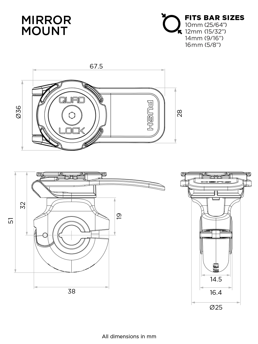 Nie idź na kompromis w kwestii estetyki. Małe mocowanie Quad Lock® Mirror Mount dyskretnie pasuje do ramienia lusterka motocykla lub skutera.