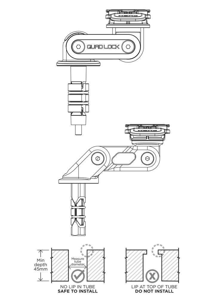 Podstawa montowana w sztycę główki ramy Quad Lock jest przeznaczona do motocykli, w których wymagany jest montaż w rurze sztycy widelca.