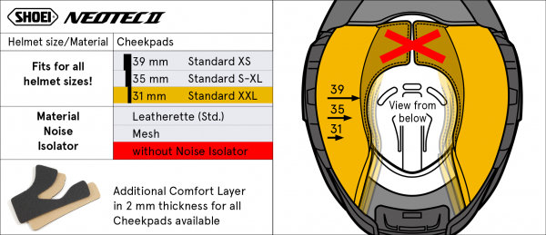 Dzięki naszym poduszkom policzkowym możesz zastąpić oryginalną wyściółkę swojego kasku. Lub użyj nieco grubszej lub cieńszej podkładki do indywidualnej regulacji. Poduszki policzkowe modelu kasku są wymienne we wszystkich dostępnych rozmiarach, co przedstawia tabela poniżej.