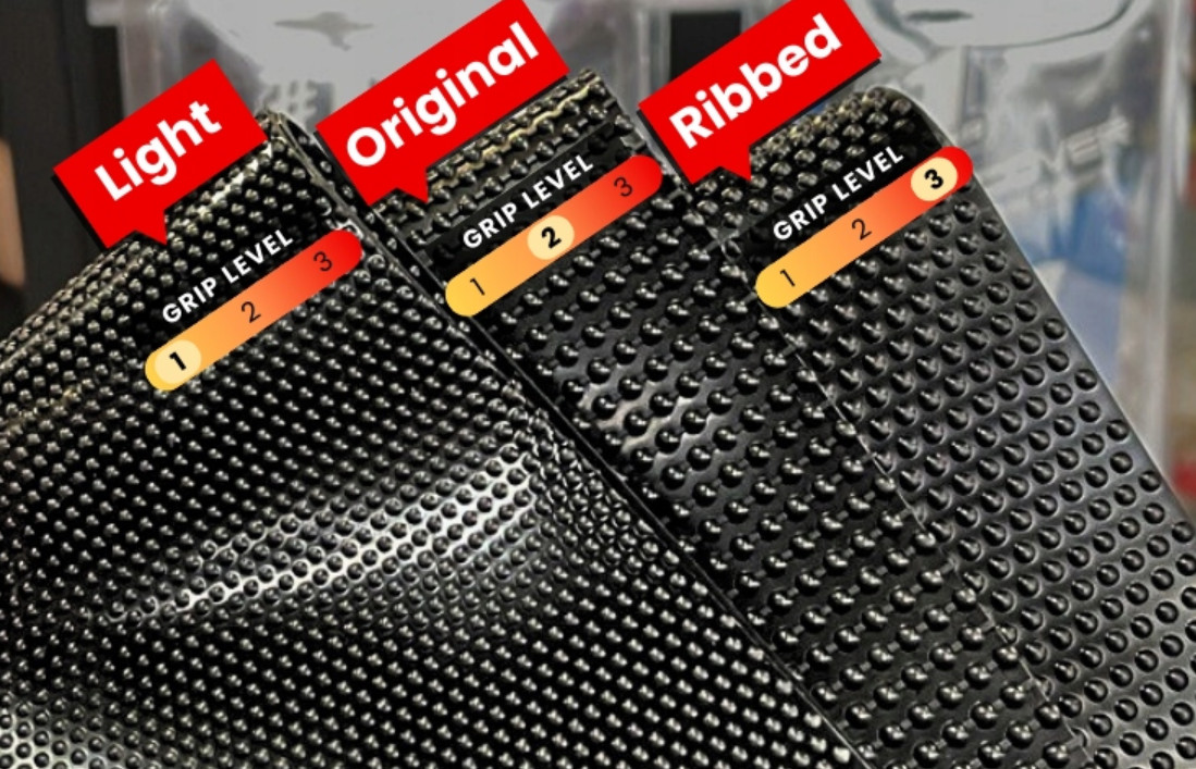 Ribbed: Wyposażony w żebra na powierzchni, co zwiększa przyczepność i może być bardziej odpowiedni w warunkach wymagających większej stabilności.