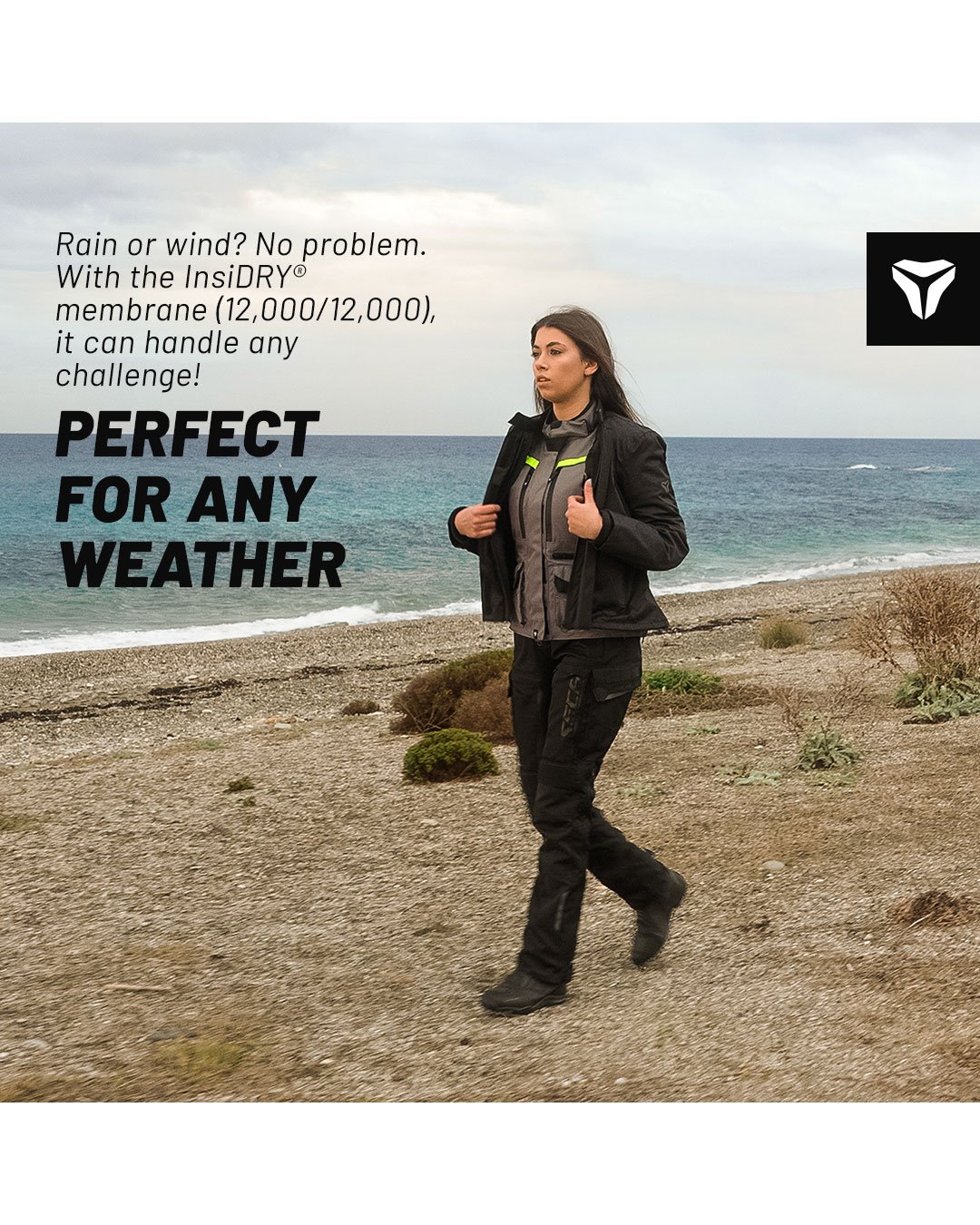 • membrana InsiDry® przystosowana do używania na zewnątrz, wewnątrz, niezależnie od spodni (jako spodnie przeciwdeszczowe)