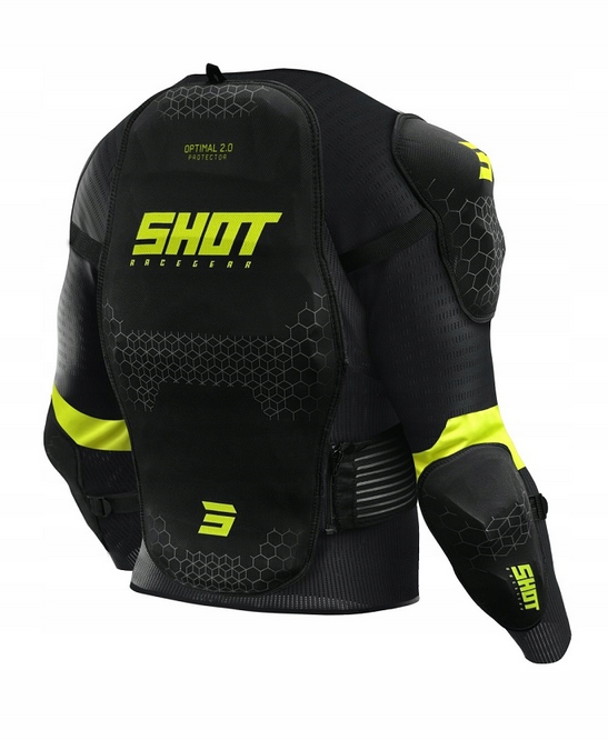 Profesjonalny model zbroi SHOT RACING OPTIMAL JACKET to sprzęt przeznaczony dla najbardziej wymagających zapaleńców motocyklowego offroadu, MTB, Downhillu oraz innych dyscyplin ekstremalnych. Został on zaprojektowany tak aby zapewnić maksymalną ochronę klatki piersiowej, pleców, ramion oraz łokci. Tak by zapewnić wysoki komfort użytkowania zastosowano regulowany pas nerkowy, klatkę piersiową i regulowane łokcie. Dla zwiększenia wentylacji, zastosowano perforowane, wyściełane panele. Materiał jest odporny na rozdarcia.