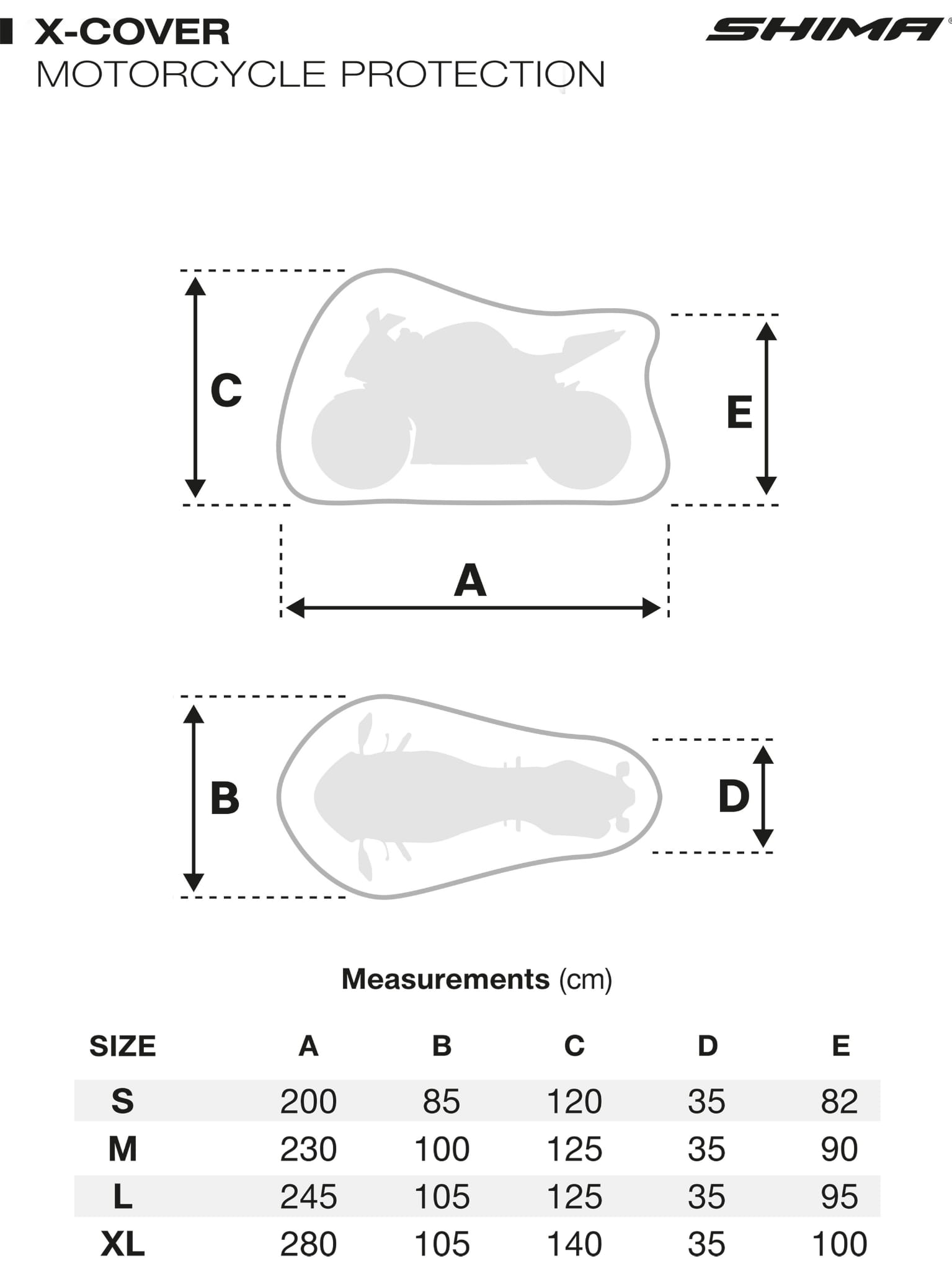 Pokrowiec SHIMA X-COVER z podwójnymi, laminowanymi szwami zapewnia ochronę przed wodą. Mocny materiał (rozrywalność >15KN), wodoodporność (>1000mm), filtr UV przeciw blaknięciu. Otwór pod przednie koło umożliwia montaż blokady. Idealny do ochrony motocykla.