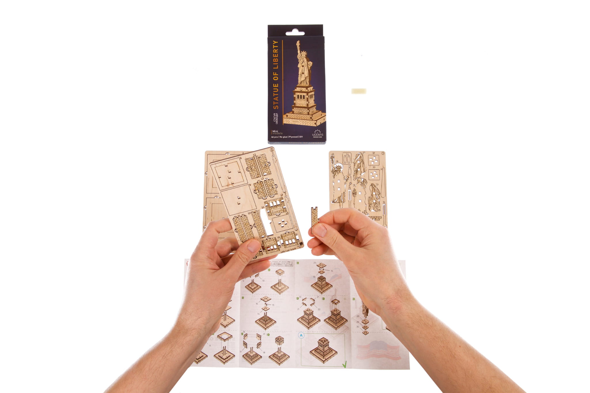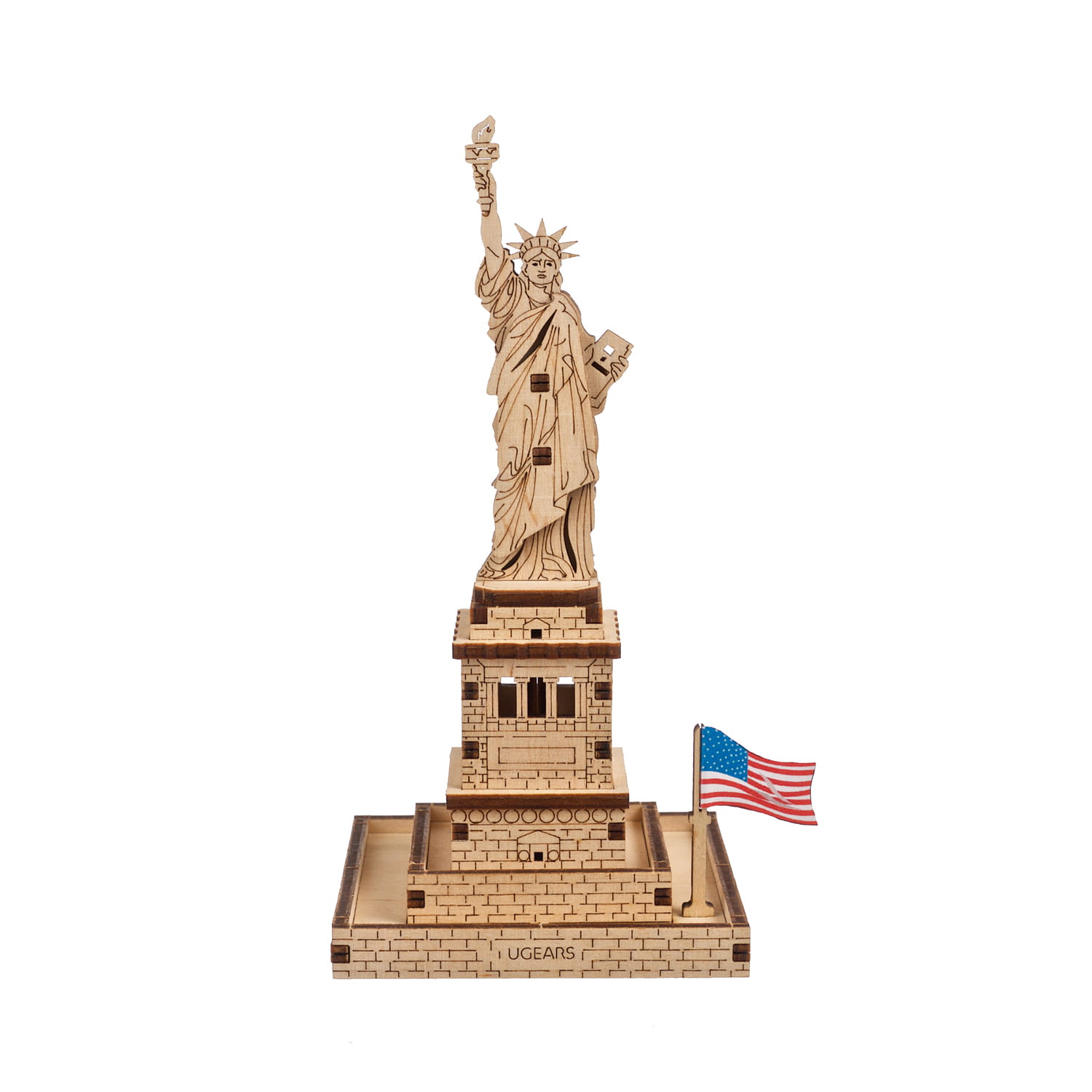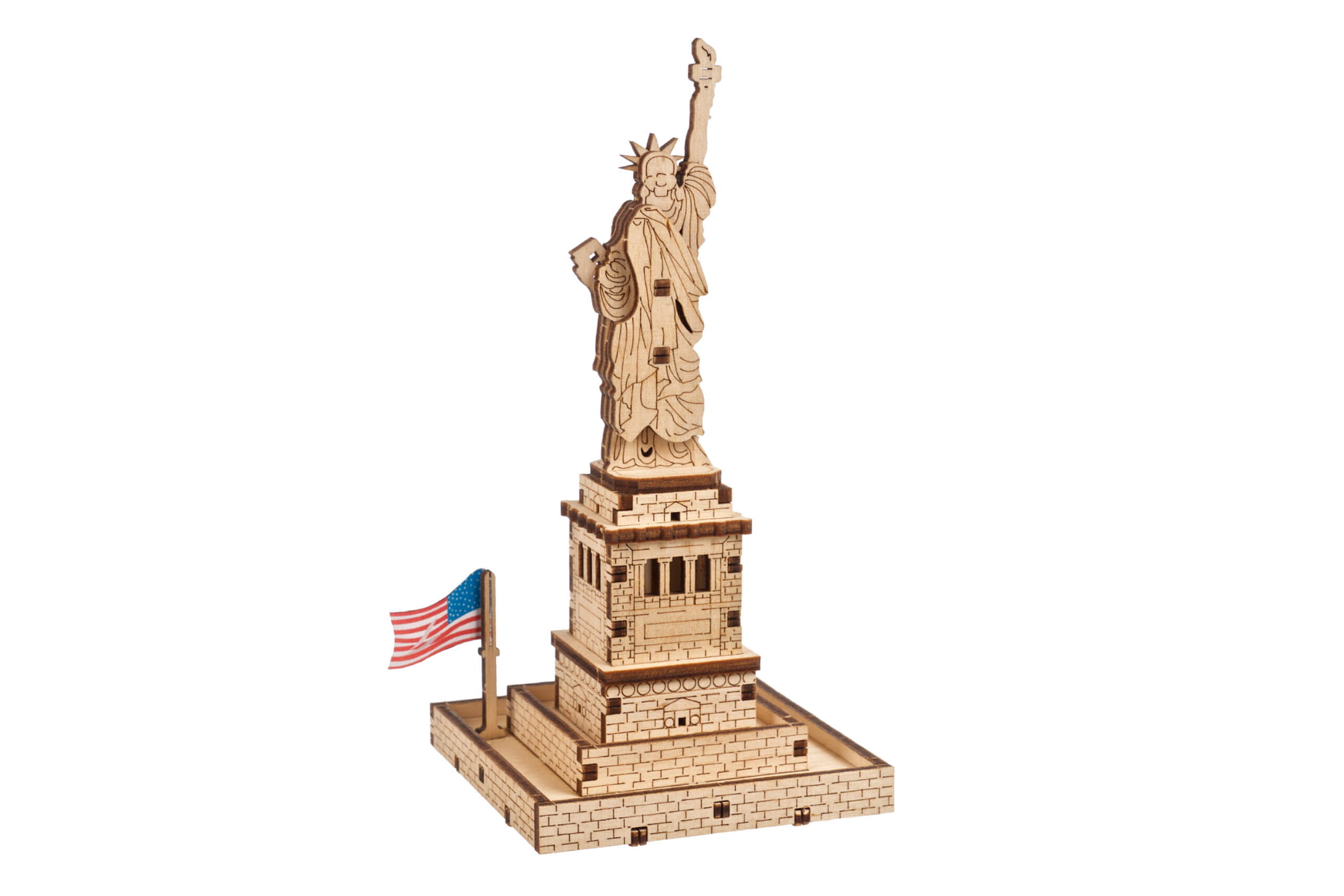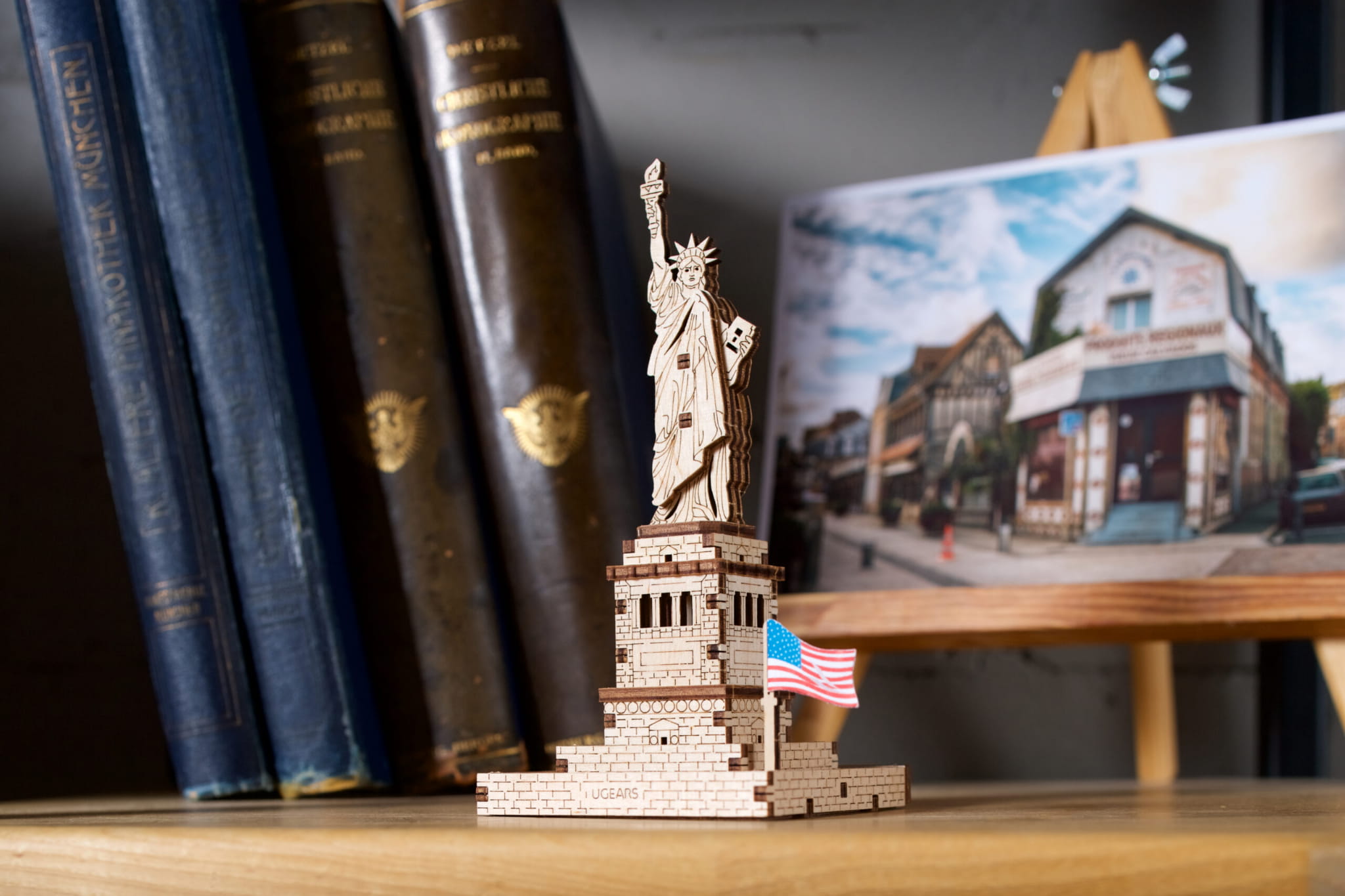 Model Statuy Wolności firmy Ugears z kolekcji World Cities to drewniany model ikony w skali 1:575, który ma 145 mm wysokości. Składająca się z 46 elementów wykonanych z drewna kompozytowego o jakości artystycznej, Statua Wolności jest oceniana jako “łatwa” i można ją zbudować w około 25 minut. Do zbudowania modelu nie potrzeba kleju ani specjalnych narzędzi, wystarczy wycisnąć elementy z laserowo wyciętych deseczek i połączyć ze sobą. Budowę ułatwiają ilustrowane instrukcje w 11 językach (angielskim, niemieckim, ukraińskim, francuskim, polskim, hiszpańskim, portugalskim, japońskim, włoskim, chińskim i koreańskim). Ten statyczny model 3D jest idealny do wyeksponowania na półce lub stole w domu lub biurze.
